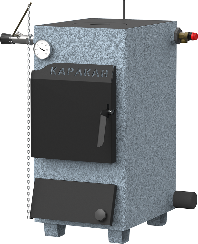 Достоинство этого котла - малые габариты в плане. По этой причине котел КАРАКАН-10 активно используют для отопления вахтовых домиков - на площади в треть квадратного метра получаем и отопительную установку, и варочную печь. Зачастую потребители предпочитают пользоваться для отопления блоком ТЭНов, а возможности твердотопливного котла приберечь для аварийного отключения электроэнергии.